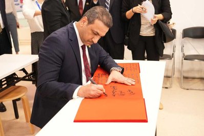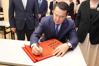 哈萨克斯坦审计院院长 阿里汉·斯迈洛夫在审计文化与教育博物馆提笔写下赠言