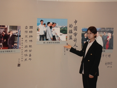 我负责近现代展区与二楼的讲解。在近现代展区,我重点介绍了中国审计制度从民国时期到新时代的演进脉络。侯凯审计长特别驻足于审计署成立后审计体系重建的展板前,补充了许多关键细节。阿卜杜拉耶夫院长则对中国新时代的审计制度表现出浓厚兴趣,与侯凯先生交流他对新时代审计的看法。那一刻,我清晰感受到:审计不仅是账册上的数字,更是国家治理现代化的缩影,而中国近现代审计史正是这种变革的见证。