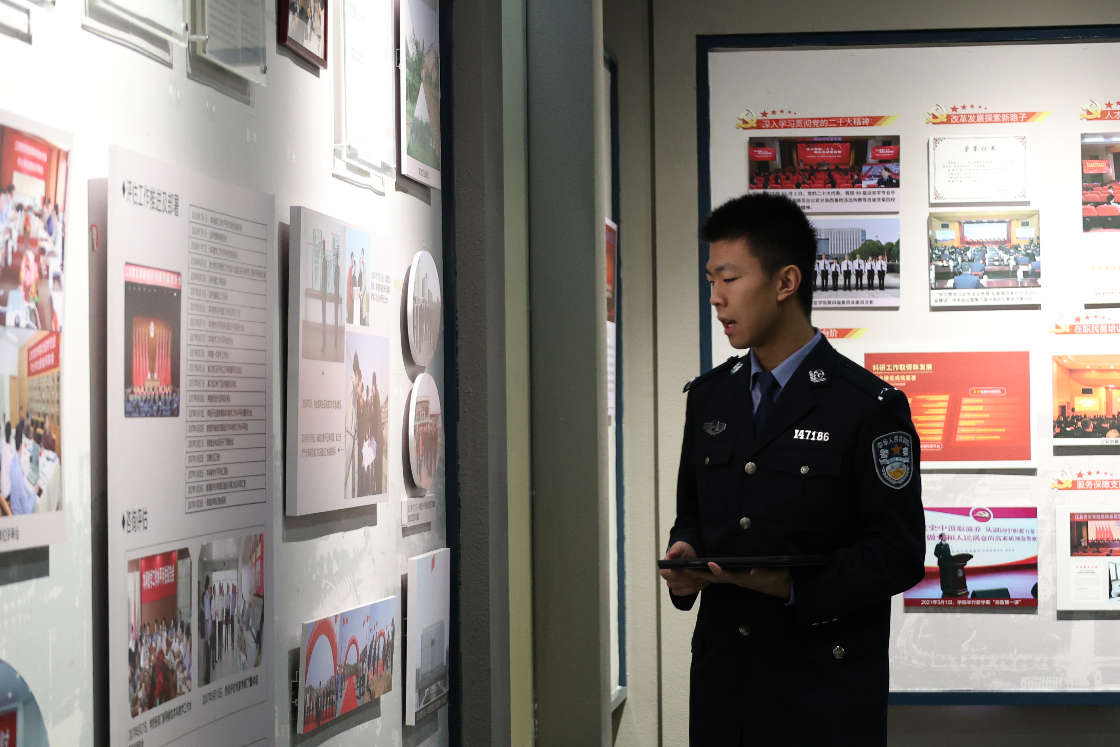 进入校史馆,讲解员同学首先向我们介绍了“厚德崇法,忠诚奉献”这一江警校训的内涵,并详细讲解了学校自创立以来的办学历史与发展历程。校史中生动展现了人民公安在巩固新生政权、助力社会主义改造过程中发挥的重要作用。讲解结束后,博助团的同学们在校史馆的来宾手册上签名留言。